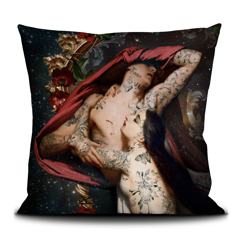 Housse coussin 50X50 imprimée sur velours/Cushion cover 50X50 printed on velvet Finition passepoil noir/Black piping finish