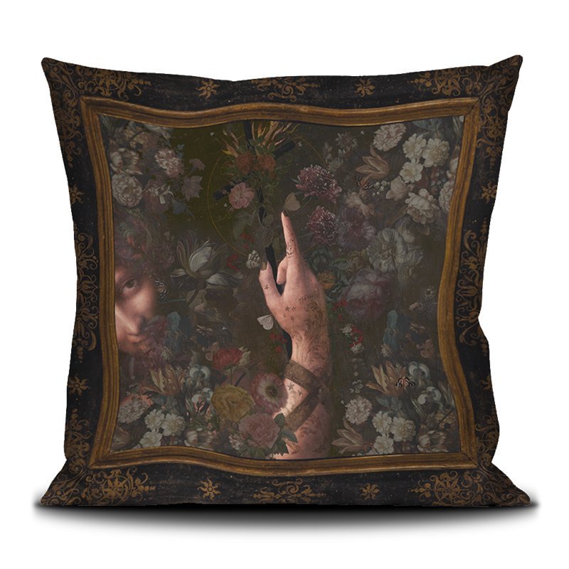 Housse coussin 50X50 imprimée sur velours/Cushion cover 50X50 printed on velvet Finition passepoil noir/Black piping finish