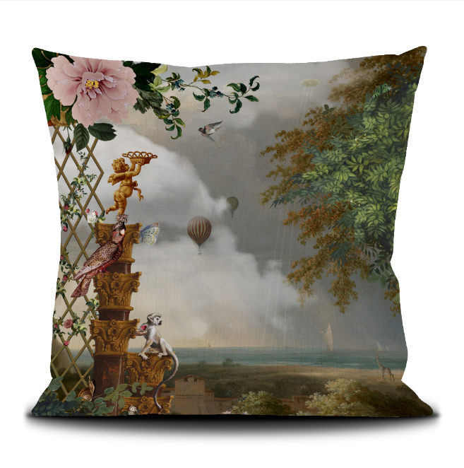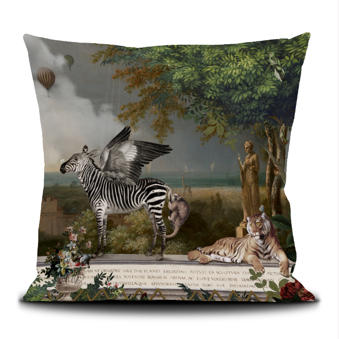 Housse coussin 50X50 imprimée sur velours/Cushion cover 50X50 printed on velvet Finition passepoil noir/Black piping finish