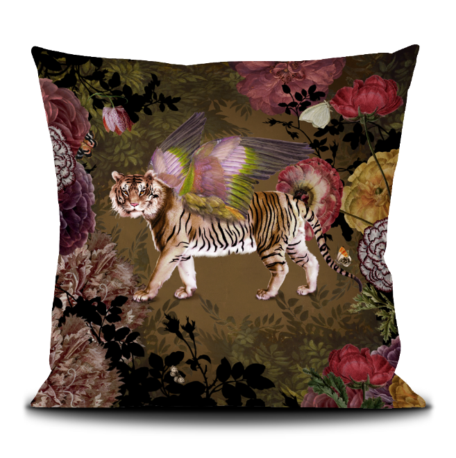 Housse coussin 50X50 imprimée sur velours/Cushion cover 50X50 printed on velvet Finition passepoil noir/Black piping finish