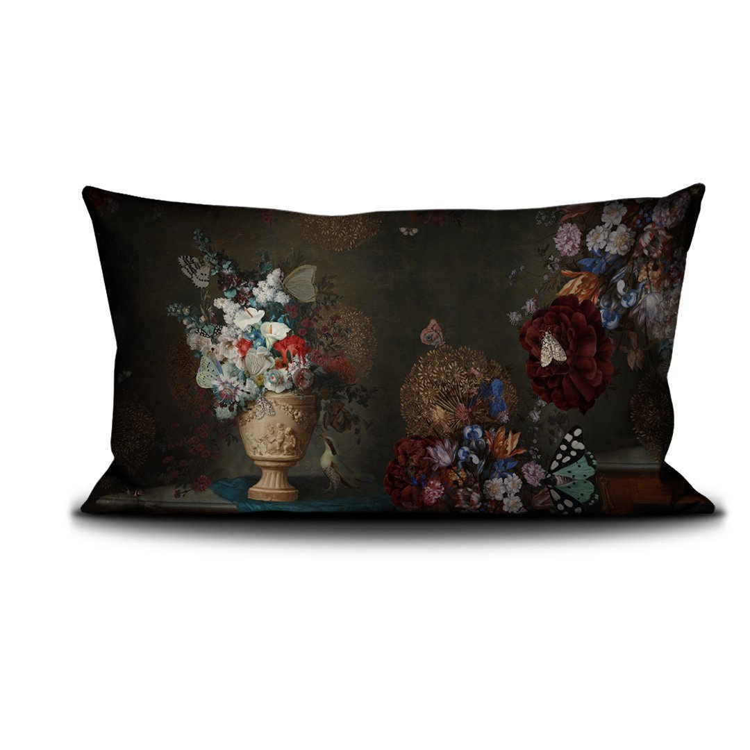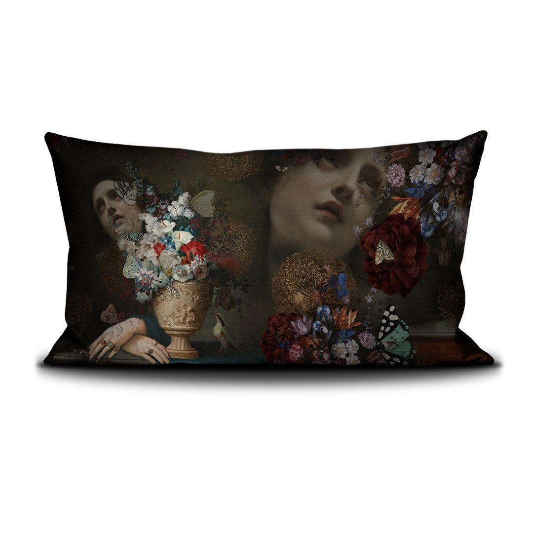 Housse coussin 70x140cm imprimée sur velours/Cushion cover 70x140cm printed on velvet Finition passepoil noir/Black piping finish