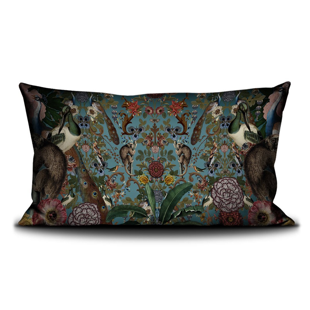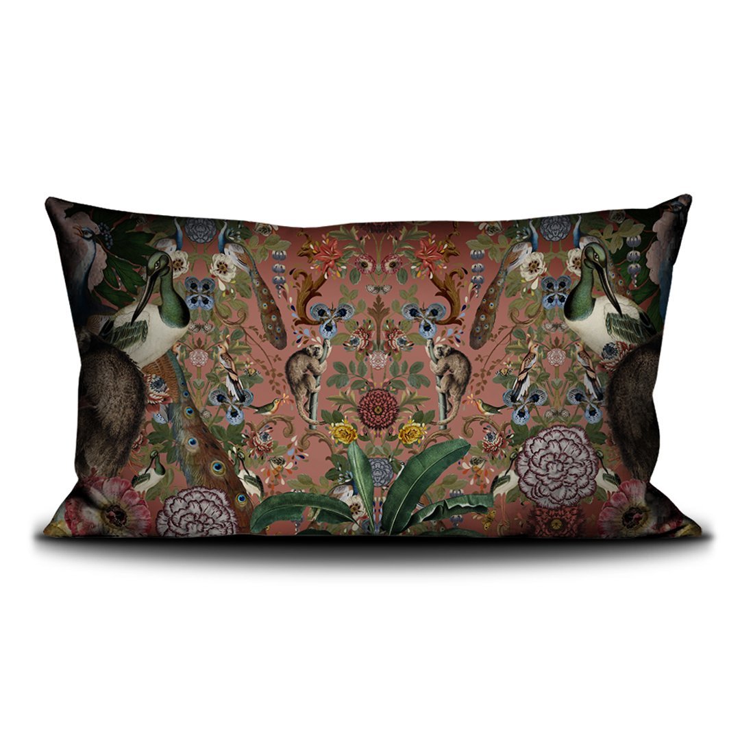 Housse coussin 70x140cm imprimée sur velours/Cushion cover 70x140cm printed on velvet Finition passepoil noir/Black piping finish
