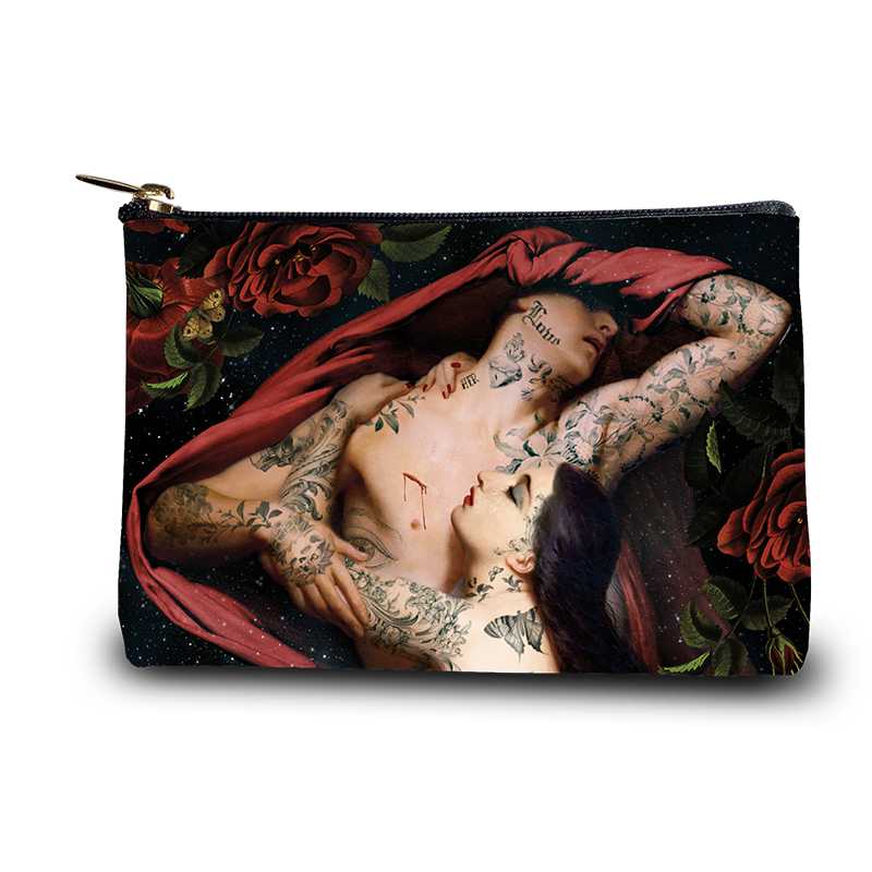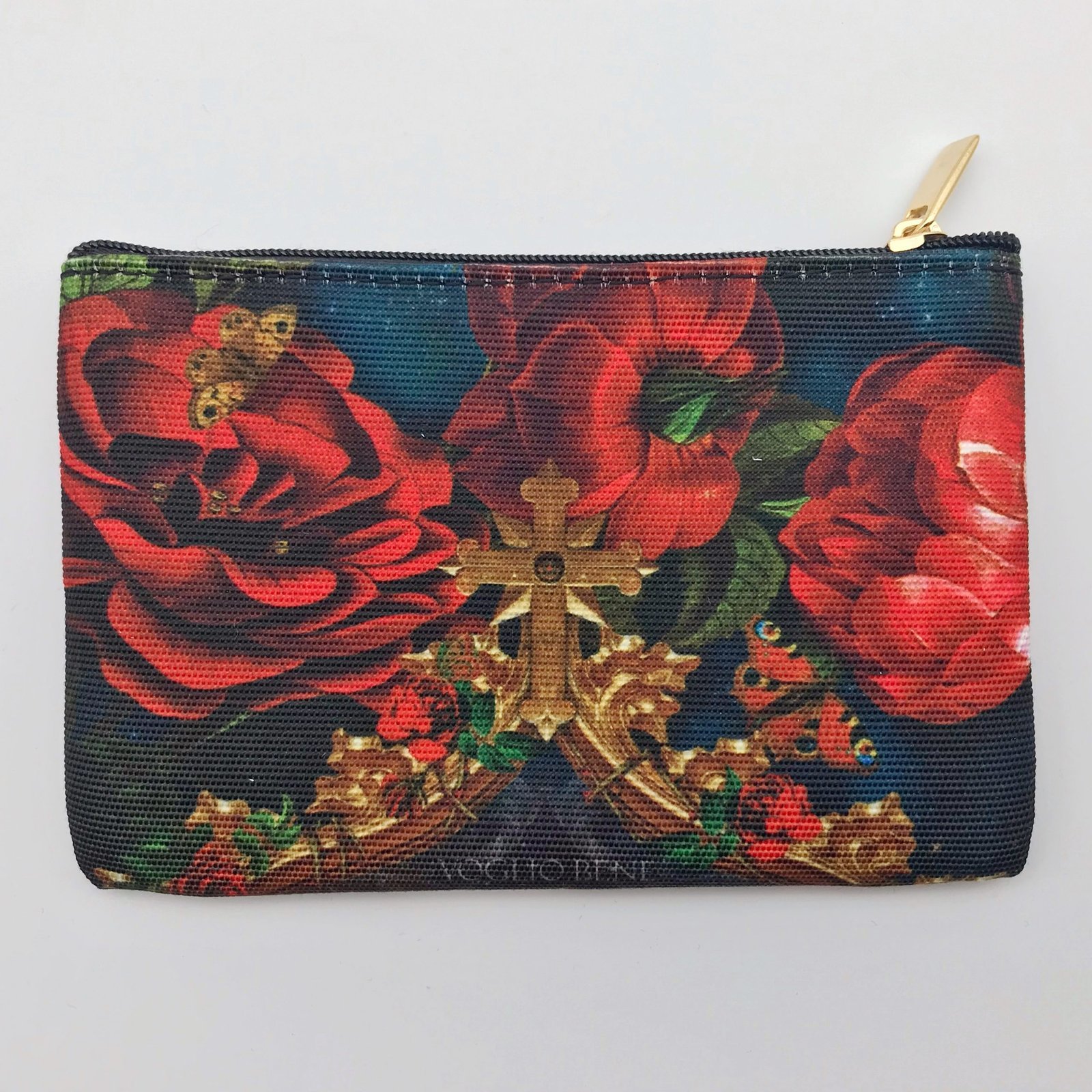 Coin purse format 9,5X14cm printed on polyester canvas. Front and back. Finished with black zip and inner lining