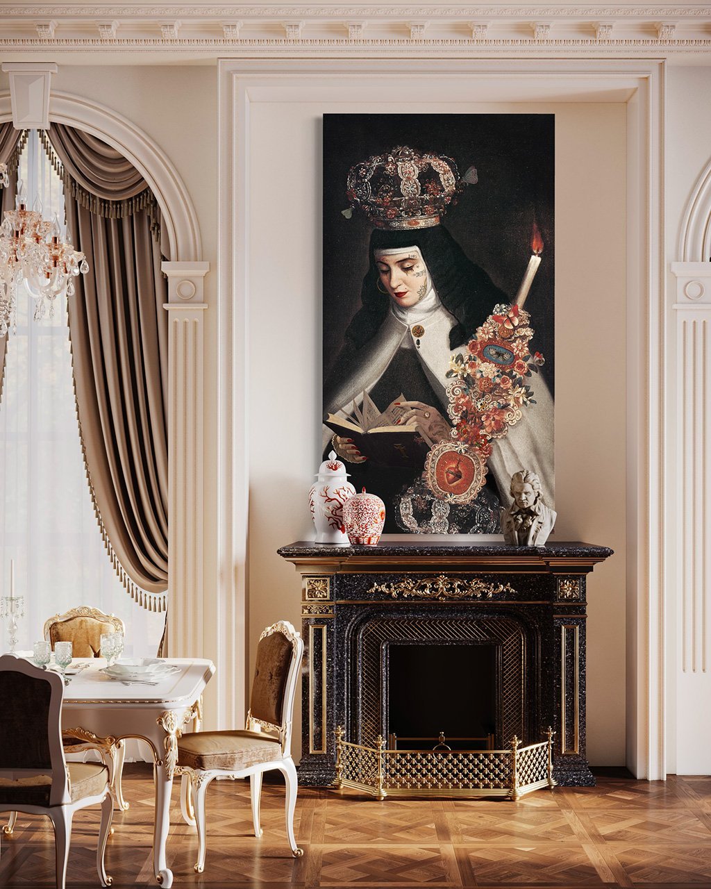 Imprimée sur velours de polyester. Haute définition d’impression